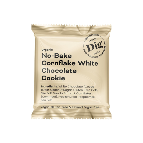 Ainesosat: Valkosuklaa* (75%) (kaakaovoi*, kookossokeri*, gluteeniton kaura*, merisuola, vaniljauute*, kaakaopitoisuus 40%), maissihiutale* (23%) (maissijauho*), pakastekuivattu vadelma*, merisuola . *Luomu.