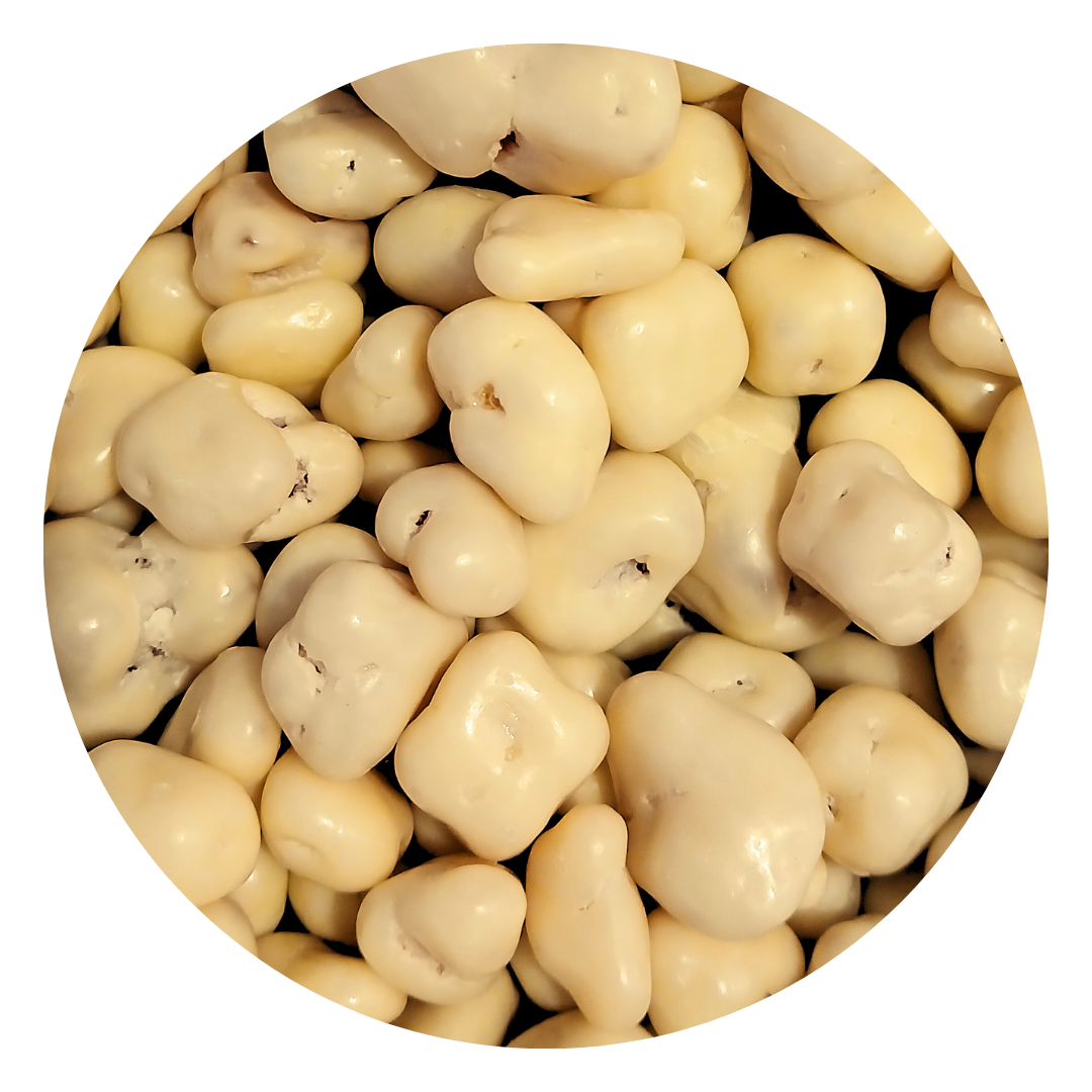 Ingredienser: Socker, papaya, kakaosmör, HELMJÖLKpulver, laktos (från MJÖLK), fett-fri MJÖLKpulver, emulgeringsmedel SOJAlecitin, konserveringsmedel SVAVELDIOXID, naturlig vaniljsmak, stabilisator arabicum, yoghurtpulver (innehåller MJÖLK). Förvara på en torr och sval plats.